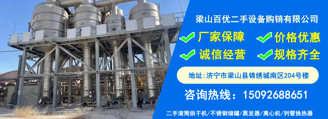 梁山百優(yōu)二手設(shè)備購銷有限公司座落于名揚(yáng)中外、風(fēng)景秀麗的水泊梁山北依黃河,西靠京九鐵路,東臨京滬鐵路,京福高速,日菏,濟(jì)菏高速貫穿全境,交通十分便利。我們從事二手化工設(shè)備回收銷售。我們~長期出售二手化工設(shè)備,二手反應(yīng)釜,搪瓷反應(yīng)釜,不銹鋼反應(yīng)釜,二手壓濾機(jī),廂式壓濾機(jī),板框壓濾機(jī),隔膜壓濾機(jī),二手離心機(jī),三足離心機(jī),臥式刮刀離心機(jī),臥式螺旋沉降離心機(jī),二手分離機(jī),酵母分離機(jī),淀粉分離機(jī),油水分離機(jī),煤泥分離機(jī),二手干燥機(jī),閃蒸干燥機(jī),噴霧干燥機(jī),流化床干燥機(jī),氣流干燥機(jī),管束干燥機(jī),滾筒干燥機(jī),二手冷凝器...